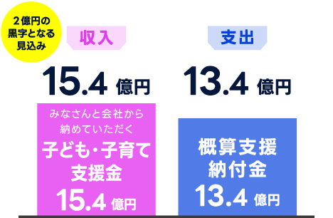 高齢化の進展による保険給付費の増加、納付金の増加があるものの、昨年度に続き賃金上昇が見込まれることにより、30.6億円の黒字となる見込みです。
