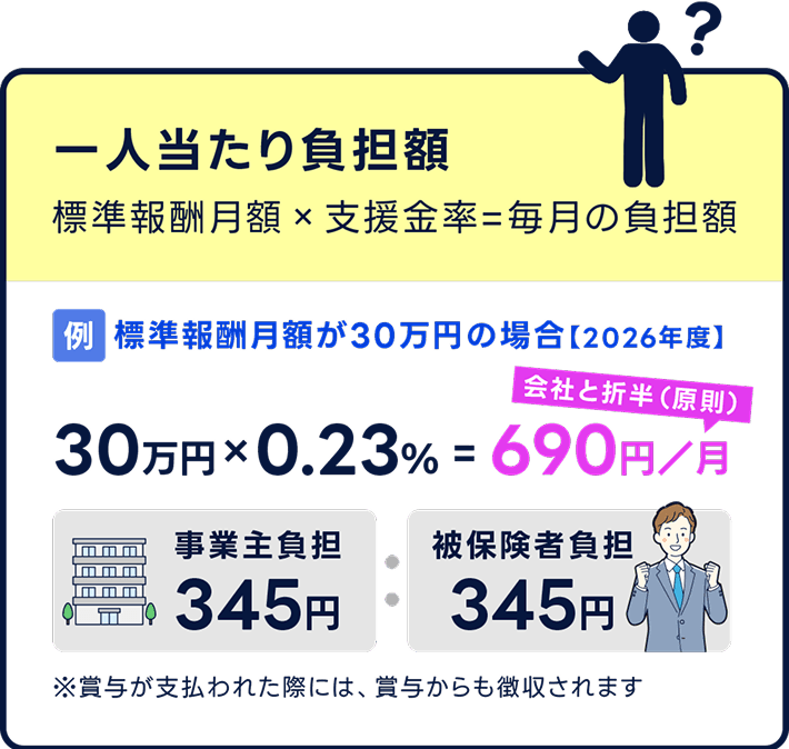 2026年度は0.23%(事業主0.115%、被保険者 0.115%)になります。次年度以降、段階的に上がり、2028年度以降は固定になる予定です。